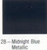 | Silver Metallic | Bright Blue Metallic | Midnight Blue Metallic | White | Black | Yellow Gold | Flame Red Metallic | Bright Red | Medium Gray Metallic |